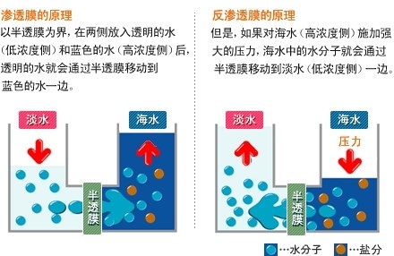 透是一種物理現(xiàn)象。當(dāng)兩種含有不同鹽類的水,如用一張半滲透性的薄膜分開就會(huì)發(fā)現(xiàn),含鹽量少的一邊的水分會(huì)透過膜滲到含鹽量高的水中,而所含的鹽分并不滲透,這樣,逐漸把兩邊的含鹽濃度融合到均等為止,這一過程稱為滲透。